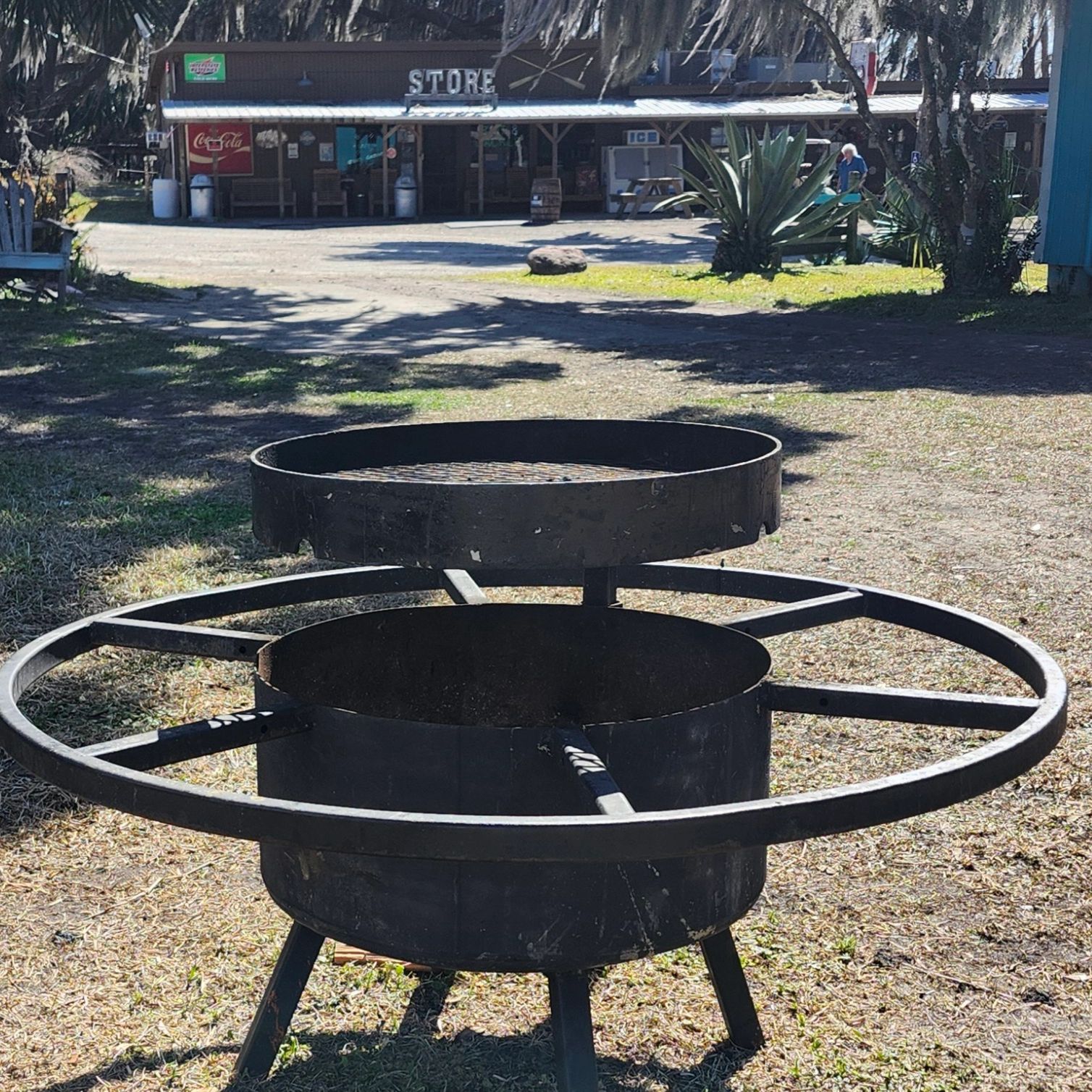 Our handmade, fire pit is small enough to tote where you choose to take it, but large enough to enjoy enough space for warmth or cooking with our spin away cooking grate.